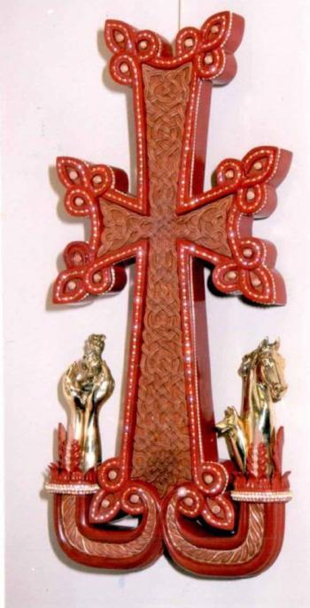 «ХАЧКАР» (Красное дерево. Бронза. Торцевые части инкрустированы. Высота 64 см.)