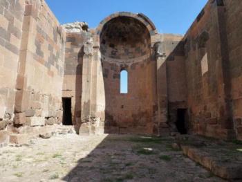 Патрик Донабедян: В центре этого ансамбля, как я говорил, есть базилика. Она точно не датирована, но на основании сравнительного исследования архитектуры и скульптурного декора этого памятника, можно легко прийти к заключению, что это памятник раннехристианского периода, а именно, примерно V-VI веков. А вокруг нее все остальное – не датировано. И это очень сложно, потому что развалины в плохом состоянии, очень мало сохранилось, и очень трудно судить. И тут археология очень помогает. И вот поэтому мы и ведем разного типа исследования. Мы исследуем со стороны классического искусствоведения, т.е. снаружи, но также мы ведем археологические раскопки с надеждой, что мы сможем лучше датировать, вообще датировать эти развалины.
