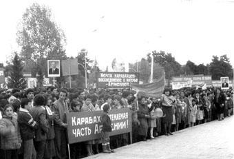 Но ничего ни у Коновалова, ни у очередного десанта из Баку не получилось. Ибо уже 12 февраля в Степанакерте, Мардакерте и Гадруте одновременно проходили собрания партийно-хозяйственного актива. В повестке один вопрос: воссоединение НКАО с Армянской ССР. В Мартунинском и Аскеранском районах произошли стычки между активистами и руководством области. Презрев угрозы, в обоих местах протест выразили митингами. Самое главное произошло 13 февраля. Ровно в одиннадцать часов в Степанакерте на площади Ленина состоялся не спонтанный, а заранее организованный первый митинг, который продлился час. Трудно было властям составлять тексты своих докладов руководству Кремля: за объединение с матерью-родиной выступали под лозунгами дружбы народов, гласности, в поддержку перестройки и политики Горбачева.