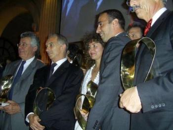 Директор академии киноискусств Франции Ален Терзян (второй слева), Юрий Джоркаефф, ресторатор Армен Петросян на вручении премии "Армянский Сезар".