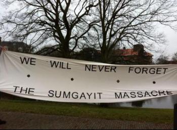 27 февраля молодежная организация «Ай Дат» Нидерланды (структура АРФ Дашнакцутюн) организовала демонстрацию у стен посольства Азербайджанской республики по случаю двадцатипятилетия Сумгаитских погромов. Данная демонстрация была одобрена местными властями, поэтому правоохранительные службы следили за ходом мероприятия.