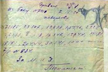 5. Шифрограмма дипломатического представителя Азербайджана в Армении Хана-Текинского.