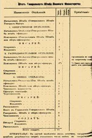 2. Штатное расписание Главного штаба военного министерства Армении.