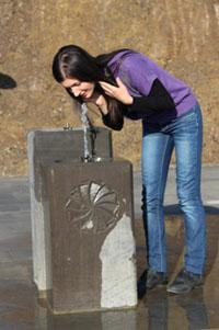 Супруга автора пьет из фонтанчика на выезде из Шуши[/caption]