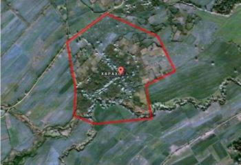 Вид со спутника на лезгинское село Храх-Оба. Видны зеленые обработанные поля вокруг села