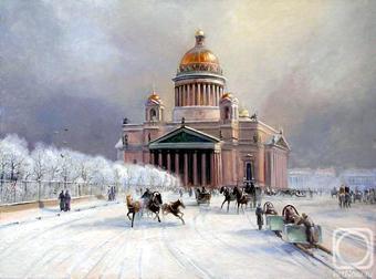 И разве безосновательно? - можем спросить мы. Кто лидирует в продажах Сотбис? Айвазовский. Недавно на аукционе было продано небольшое полотно Айвазовского "Исаакий в зимний день" - вещь колдовской красоты: мерцающий снег, в белейшей дымке магический вид на собор и золотой купол, даже ощущаешь, как льдинки звенят. Маленькое сокровище! Можно позавидовать человеку, приобретшему этот шедевр. Вот вам и маринист! Ах, право, что значат все эти "амплуа"! Не просто маринист, а мастер, мастер.