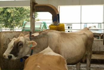 Среднегодовой надой пока составляет 4 500 кг молока. Сырье, поступающее только с этого хозяйства относят к "экстра" классу. Литр молока-сырья в Нагорном Карабахе стоит 140 драм - это примерно 11,43 рубля, - что, естественно, не покрывает расходы на немецкий скот, немецкое кормовое и шведское доильное оборудование.