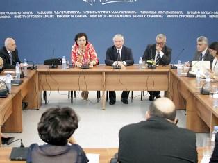 Отвечая на вопросы около 50 деятелей, прибывших из разных стран и занимающихся проблемами армянского народа, Эдвард Налбандян подробно представил приоритеты внешней политики Армении, шаги по решению всеармянских вопросов, усилия Еревана и международного сообщества по мирному урегулированию карабахского конфликта, а также коснулся проблемы безопасности сирийских армян.