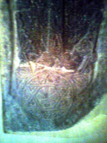 Мое основное желание - поговорить с людьми во дворе церкви, но погода начинает портиться и людей почти нет. Я начинаю осматривать церковь и в одном из углов замечаю интересный барельеф, который наверняка намного старше самого храма, и, скорее всего, был вложен в стену при строительстве. У меня, к сожалению, не удается встретить кого-либо из служителей, чтобы расспросить о камне, и я всего лишь делаю снимок стены, где под крестом изображена звезда Давида с армянским керхачом (свастикой) посередине. Интересно!