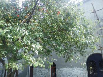 Приехав в Ахалкалаки первым делом стремлюсь посетить церковь Сурб Хач. И первое чувство, как здорово, что приехал именно сейчас. Яблони с ярко красными яблоками, часть которых уже начала опадать, создают ощущение библейского Райского Сада во дворе храма.