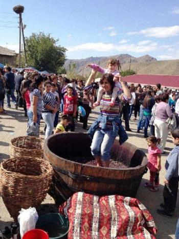 На винный фестиваль Арени съезжаются гости из разных стран. Местные мастера знакомят гостей с искусством плетения корзин, выпечки лаваша, правильного приготовления настоящего шашлыка, а армянские девушки отжимали виноград для вина. Праздник сопровождается национальными танцами и песнями, дегустацией сыра и вина. В этом году фестиваль проходил с 4 по 6 октября.