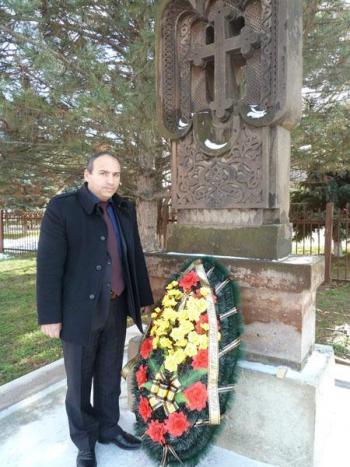 Г.Карапетян от имени армянской общины возложил венок у Хачкара, установленного во дворе церкви Успения Пресвятой Богородицы в память о жертвах геноцида армян.