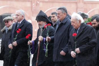 25 участников спасательных работ, которые ликвидировали последствия той страшной аварии, собрались в Армянском храмовом комплексе, чтобы почтить память погибших при землетрясении и возложить цветы.