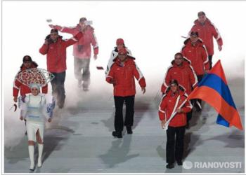 Члены сборной Армении, лыжники Сергей Микаелян, Артур Егоян, Катя Галстян и горнолыжник Арман Серебракян приняли участие в церемонии открытия XXII зимних Олимпийских игр в Сочи на стадионе «Фишт». Как сообщает Арменпресс армянский флаг нес Сергей Микаелян.