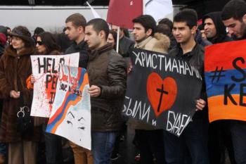 В Москве прошла акция солидарности с кесабскими армянами и народом Сирии. Участники акции осудили международный терроризм и обвинили власти Турции в пособничестве сирийской оппозиции, а также поддержали позицию России и Армении в сирийском конфликте. В мероприятии, которое организовали общественная организация «Русско-армянское содружество» и Ассоциация армянской молодежи Москвы, приняли участие более трехсот человек, передает корреспондент "Кавказского узла".