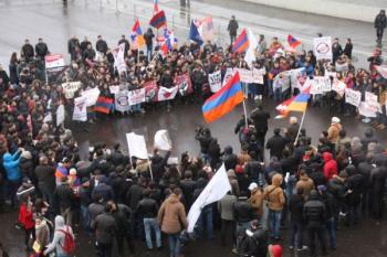 Через год будет отмечаться столетняя годовщина геноцида армян в Османской империи, напомнил Навоян. "Мы не останемся в стороне, будет поддерживать наших соотечественников, чтобы предотвратить насилие, и повторение геноцида и этнических чисток", - подчеркнул один из организаторов акции.