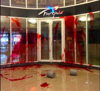 Активисты бросили ведра с кровью в фойе здания и проявили свой гнев по поводу государственного отрицания геноцида 1915 года со стороны Турции. Держа в руках плакаты с надписями «Справедливость для армянского народа!», «Турция – вон из Кесаба!» и «Правосудие, репарации!», протестующие провели мирный сидячий пикет перед зданием.