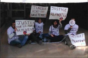Группа молодых армян из организации «Нор серунд» вечером 18 апреля провела акцию протеста перед зданием отдела культуры посольства Турции в Париже, требуя справедливости и возмещения ущерба за геноцид, которому подвергся армянский народ. Об этом пишет «Nouvelles d`Arménie».