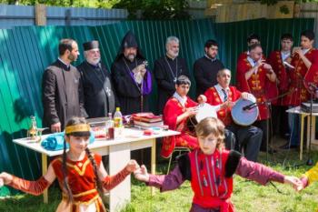 После слов епископа в исполнении вокалиста Центра армянской национальной культуры им. А.Г.Ованесова Радика Тамразяна прозвучала песня великого Комитаса «Оровел». В завершение дети из танцевального ансамбля «Армавир» встали вокруг основания часовни и под живое звучание зурны и барабана исполнили традиционный танец предков «Кочари».