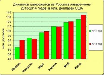 При этом из абсолютного прироста в менее $34,9 млн. почти $27,6 млн. (или же 79,0%) обеспечили «российские» трансферты. Хотя доля России в общем объеме трансфертов за год несколько снизилась (на 2,3 процентных пунктов), она все же довольно внушительная – 81,2%.