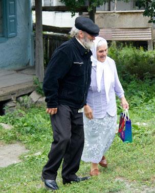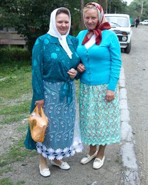 Через все село тянутся люди разных возрастов. Женщины в светлых платьях или юбках, в косынках. Мужчины в рубашках, с русским вышитым поясом, с длинными бородами. То и дело слышится «Здаров».