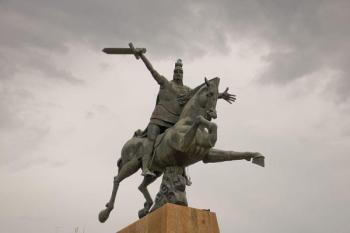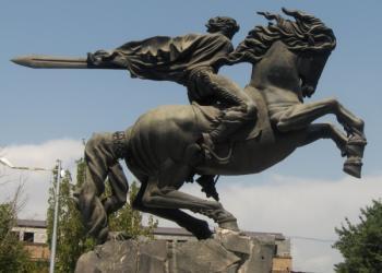 В превосходной пластике воссоздан и Вардан Мамиконян. Издали памятник напоминает летящую птицу, это летит конь Вардана, едва касаясь клубящейся пыли. Все четыре копыта его в воздухе.