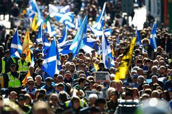 В авангарде движения за независимость оказалась Шотландская национальная партия. Провозглашение государственного суверенитета стало главным пунктом ее предвыборной программы. Партия одержала победу на последних местных выборах и, создав коалицию, сформировала правительство, декларировавшее своей целью выход из состава Великобритании. Первый министр Шотландии, он же лидер Национальной партии Алекс Салмонд уже тогда пообещал, что проведет референдум о независимости. Салмонд предлагал вынести на референдум три варианта: первый — сохранение нынешнего статус-кво, второй — расширение прав и полномочий автономии, третье — создание с Великобританией ассоциированных отношений, предполагающих контроль Лондоном лишь сферы внешних сношений и обороны, и наконец четвертый — полный суверенитет. В британской столице настояли, чтобы шотландцы отвечали на один-единственный вопрос: “Да или нет независимости?”. Это по идее должно “напугать” колеблющуюся часть населения. Алекс Салмонд легко согласился на уступку, поскольку верит, что сумеет убедить соотечественников поддержать идею полного суверенитета.