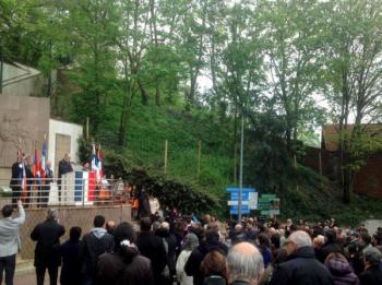 Արարողության ընթացքում հայ եկեղեցիների հոգեւոր այրերը աղոթք հնչեցրեցին, իսկ այնուհետ ելույթներ ունեցան ՀՀ դեսպանը, Իսի-լե-Մուլինոյի քաղաքապետը եւ ֆրանսահայ երիտասարդական կառույցների ներկայացուցիչները: Երիտասարդներն իրենց խոսքում վստահեցրին, որ նոր սերունդը ավելի քան վճռական է տրամադրված Հայոց ցեղասպանության ժխտողականության դեմ պայքարում: Անդրե Սանտինին, ընդգծելով Հայոց Ցեղասպանության ժխտման քրեականացման կարեւորությունը, նշեց, որ անընդունելի է, որ Ֆրանսիայում լինի քաղաքացիների մի խումբ, ում հիշողությունը վիրավորելը կարող է անպատիժ մնալ: