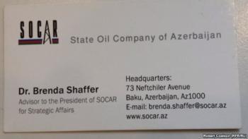 Как отмечает Коалсон, сама профессорша не ответила на неоднократные просьбы прокомментировать этот факт. А пресс-секретарь ГНКАР Низамеддин Гулиев заявил, что она не работала на ГНКАР. Между тем, утверждает автор, Бренда Шаффер еще в 2013 г., во время семинара в Будапеште, представилась в качестве советника Абдуллаева. В качестве доказательства редакция приложила ее визитку с логотипом ГНКАР и соответствующей записью.