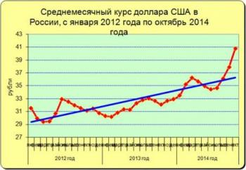 Понятно, что процесс этот напрямую связан с ситуацией в России. На первый взгляд, ослабление рубля явилось следствием российско-украинского конфликта. Однако и ранее, в 2012-2013 годах, тренд динамики курса доллара в России имел явно восходящий характер, а первые признаки ослабления рубля отметились с августа 2011 года.