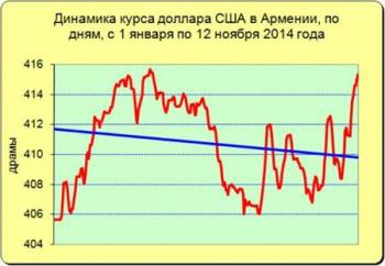 За последние дни доллар в Армении перевалил за планку в 415 драмов. Однако такой же уровень имелся в апреле текущего года, так что особой сенсации в этом нет. Учтем, что одиннадцать лет назад среднегодовой курс доллара был равен аж 579 драмов. После этого рекорда последовал его не вполне объективный спад, и в 2008 году доллар «ослаб» почти в 1,9 раза. Последовавший за этим рост курса доллара был далеко не адекватным его спаду. Что касается текущего года, то в целом тренд динамики курса доллара имеет нисходящий характер.