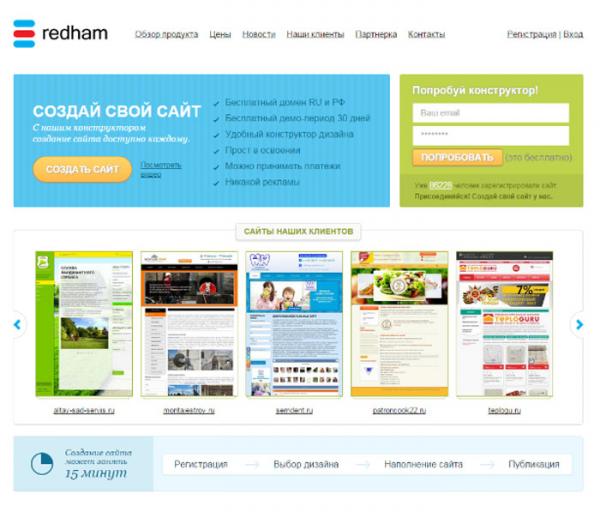 Конструктор сайтов Redham позиционируется как платформа для создания интернет-магазинов и сайтов-визиток. Основная аудитория сервиса – частные предприниматели и компании, которые понимают, что для достижения хорошего результата в любой проект нужно инвестировать. За умеренную плату Redham предоставит мощный функционал и обеспечит комфорт в процессе разработки. Разработчики понимают, что развивают продукт для людей, которые не засиживаются за ПК часами, изучая языки программирования. Поэтому в Redham сделано все для того, чтобы упростить процесс создания сайта, не растеряв при этом функциональность. Даже если вы слабо представляете, откуда берутся сайты, но являетесь более-менее опытным пользователем ПК, примерно уже за полчаса-час у вас получится набросать макет будущего сайта в Redham.