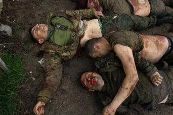 Пресс-секретарь министра обороны Армении Арцрун Ованнисян опубликовал на свой странице в соцсети Facebook фотографии убитых азербайджанских спецназовцев. "Это члены азербайджанского спецотряда на участке Матагиса", - написал он.