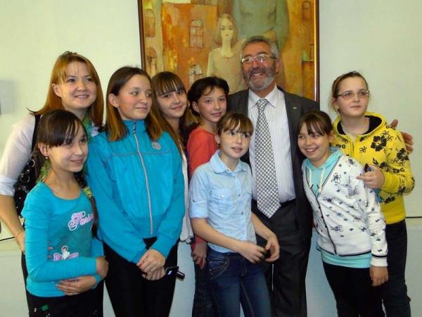 По окончании официальной части к мастеру целой стайкой подбежали ученики елабужских художественных школ, окружили его, чтобы сфотографироваться на память, а затем с гордостью пожимали мастеру руку. Этот неожиданный эпизод только лишний раз подчеркнул то внутреннее душевное обаяние, человеческую доброту и деликатность, которыми обладает художник. Они во всей полноте присутствуют в его работах и были мгновенно распознаны таким чутким божественным инструментом, как дети с их искренностью и непосредственностью.