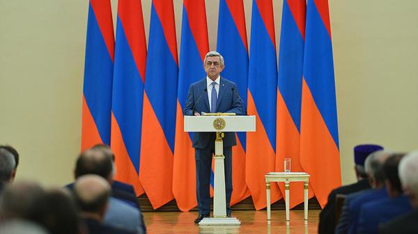 Отметим, президент Армении Серж Саргсян сегодня в президентской администрации провел встречу с представителями разных слоев общества – деятелями культуры, сферы здравоохранения, представителями средств массовой информации, общественными, политическими деятелями, членами Общественного совета, представителями исполнительной и законодательной властей, руководителями созданных в соответствии с законом постоянно действующих органов. На встрече присутствовали также представители духовенства во главе с Верховным Патриархом и Католикосом всех армян Гарегином Вторым. Глава армянского государства на встрече выступил с речью, текст которой приводит пресс-служба президента.