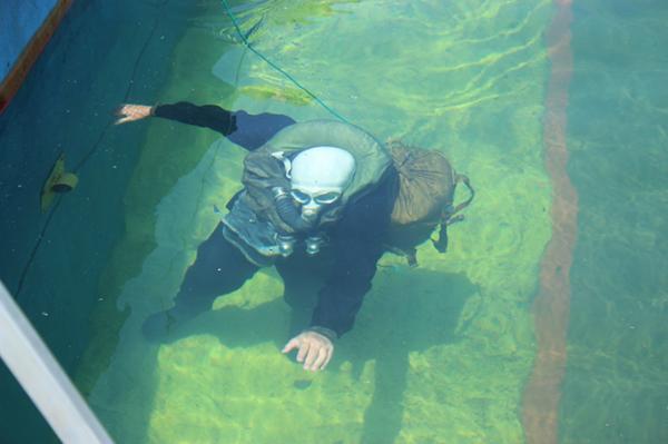 Комплекс представляет собой бассейн общей площадью более 200 кв. метров и глубиной более 5 метров, оборудованный лестницами, специальными дорожками с разметками и тросами для перемещения под водой и танковыми крюками, имитирующими корму затонувшего танка, передает пресс-служба ЮВО.