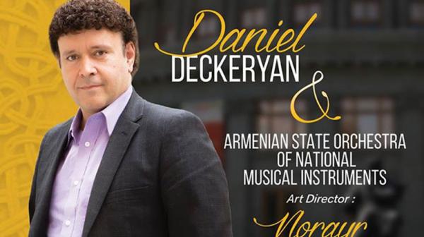 Композитор, певец, музыкант Даниел Декерян, руководствующийся девизом «Я армянин по своему выбору» вместе с Государственным национальным оркестром народных инструментов Армении 10 октября в концертном зале «Арам Хачатрян» выступит с концертом, который организовал «Mezzo Production». Художественный руководитель мероприятия – Заслуженный артист РА Норайр Давтян.