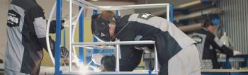 Несущий элемент мебели из экоротанга RAMMUS — каркас из алюминиевого профиля: прочный, легкий, устойчивый к коррозии. Для изготовления мебельного каркаса профильная труба из алюминия режется по предварительно нанесенной разметке, после чего подвергается гибочным операциям на современном полуавтоматическом станке с программным управлением. Подготовленные таким образом детали каркаса жестко фиксируются в кондукторе и соединяются при помощи аргоновой сварки. После шлифовки сварочных швов металлоконструкция окрашивается методом напыления в покрасочной камере и помещается в камеру полимеризации для отвердевания и сушки финишного слоя.