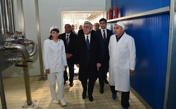 Серж Саргсян присутствовал на торжественной церемонии открытия нового завода компании "Джермук групп". Президент обошел завод, ознакомился с осуществленными инвестициями, производственными мощностями предприятия и программами развития компании "Джермук групп".