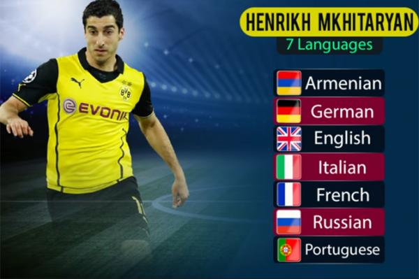 Известный интернет-канал Khalid 10 представил список из 14-ти футболистов, владеющих четырьмя и более языками. Список возглавил полузащитник сборной Армении и "Манчестер Юнайтед" Генрих Мхитарян, который владеет 7 языками: армянским, русским, английским, немецким, французским, португальским и итальянским.