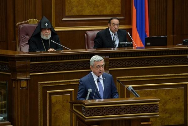 В своей развернутой речи-послании начавшему 18 мая свою работу парламенту нового созыва президент Армении Серж Саргсян отдельно коснулся нагорно-карабахской проблематики. В частности, он отметил, что в ходе предвыборной гонки были спекуляции на эту тему. Главным образом речь шла о некоторых заявлениях первого президента Левона Тер-Петросяна и бывшего министра иностранных дел Вардана Осканяна. Саргсян раскрыл некоторые подробности переговорного процесса. Приводим перевод части его речи касательно данной темы.