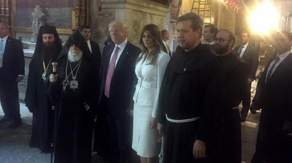 Прибывшие в Израиль президент США Дональд Трамп и его супруга Меланья Трамп посетили иерусалимский храм Воскресения Христова, более известный как храм Гроба Господня .