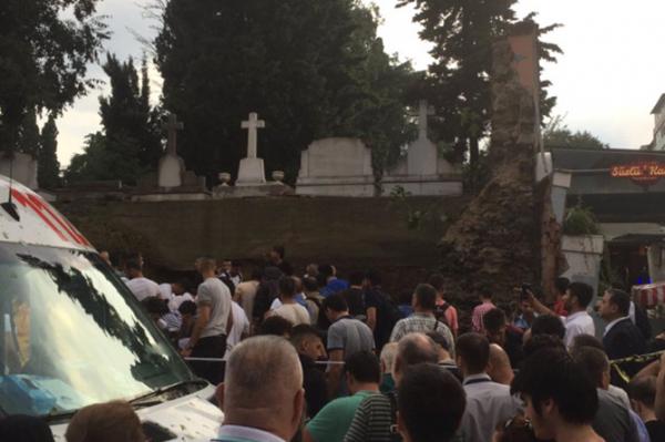 В Стамбуле в результате сильного ливня разрушилась стена кладбища в Шишли. Как сообщает "Московский комсомолец", пострадали два человека. При этом турецкие СМИ сообщают, что под завалами оказались четверо человек, спасателям удалось вытащить троих из них.