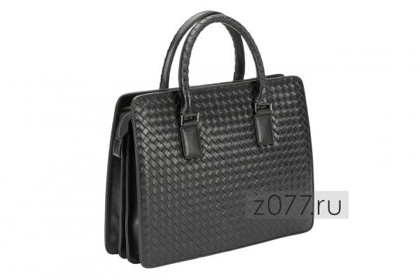 - Эффектный портфель черного цвета. Поверхность изделия украшена фирменным плетением. Размеры – 38 × 28 × 9см. Внутренняя часть разделена на три отделения, одно из них закрывается на молнию. Есть карманы для документов, мобильных телефонов, авторучек. Портфель стоит всего 9900 руб.