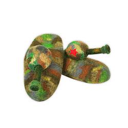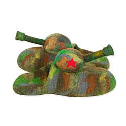 В нашей стране и за рубежом всё большую популярность в качестве подарков набирают изделия ручной работы из войлока различных направлений. Войлок тысячелетиями является одним из любимых материалов декоративно - прикладного искусства. Привлекает мастеров и дизайнеров своей шикарной текстурой, возможностью использования любых цветовых гамм, легко помогает раскрыть все творческие замыслы и выгодно преподнести особые свойства материала. Валяние в нашей стране существует с незапамятных времён, но современная технология требует особого мастерства и профессионализма. Одно из самых практичных в быту изделий из войлока, комнатные тапочки. Богатый красивый ассортимент, природный материал, приятный комфорт, бесценный лечебный эффект - это хорошие аргументы, чтобы приобрести тапки танки для любимых мужчин на 23 февраля.