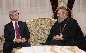 Армянская делегация во главе с президентом Саргсяном прибыла на Кипр с госвизитом 17 января, сообщает пресс-служба главы Армении. В ходе встречи армянского президента с предстоятелем Кипрской Православной Церкви было сказано о многовековой армяно-кипрской дружбе, историческом сходстве судеб двух народов, а также роли и значении Церкви в вопросе сохранения народом культуры и национальной идентичности в сложных условиях потери государственности.