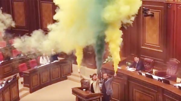 Вечером 13 апреля представители оппозиционной фракции Национального Собрания Армении «Елк» («Выход») на Площади Свободы в Ереване проведут митинг. Об этом сегодня на заседании парламента РА заявил депутат от «Елк» Арарат Мирзоян. «На Площади Свободы в Ереване мы зажжем наш факел свободы», – сказал Арарат Мирзоян, затем он достал из кармана цветные дымовые шашки и зажег их. К Арарату Мирзояну присоединилась также депутат от фракции «Елк» Лена Назарян.