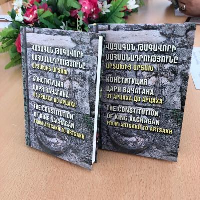 В ТРЕХЪЯЗЫЧНОЙ (НА АРМЯНСКОМ, РУССКОМ, АНГЛИЙСКОМ) КНИГЕ освещена история Армянского царства, образованного в Арцахе во второй половине пятого века, а также приведены обстоятельства созданной царем Вачаганом и всенародно принятой Конституции, которая веками играла важную роль в укреплении государственности и правосознания на этой земле.