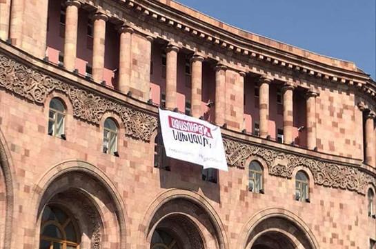Сегодня на площади Республики, параллельно с проходящим заседанием правительства, на фасаде гостиницы «Marriott Armenia Yerevan» был вывешен огромный плакат с надписью «Свободу Президенту!», подразумевающий экс-президента Армении Роберта Кочаряна.