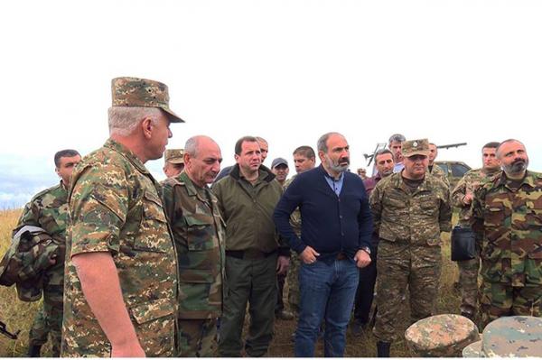 "Глав обоих армянских государств сопровождали министр обороны Армении Давид Тоноян, начальник генштаба ВС РА Артак Давтян, министр обороны Арцаха Левон Мнацаканян, другие должностные лица", - отмечается в сообщении.